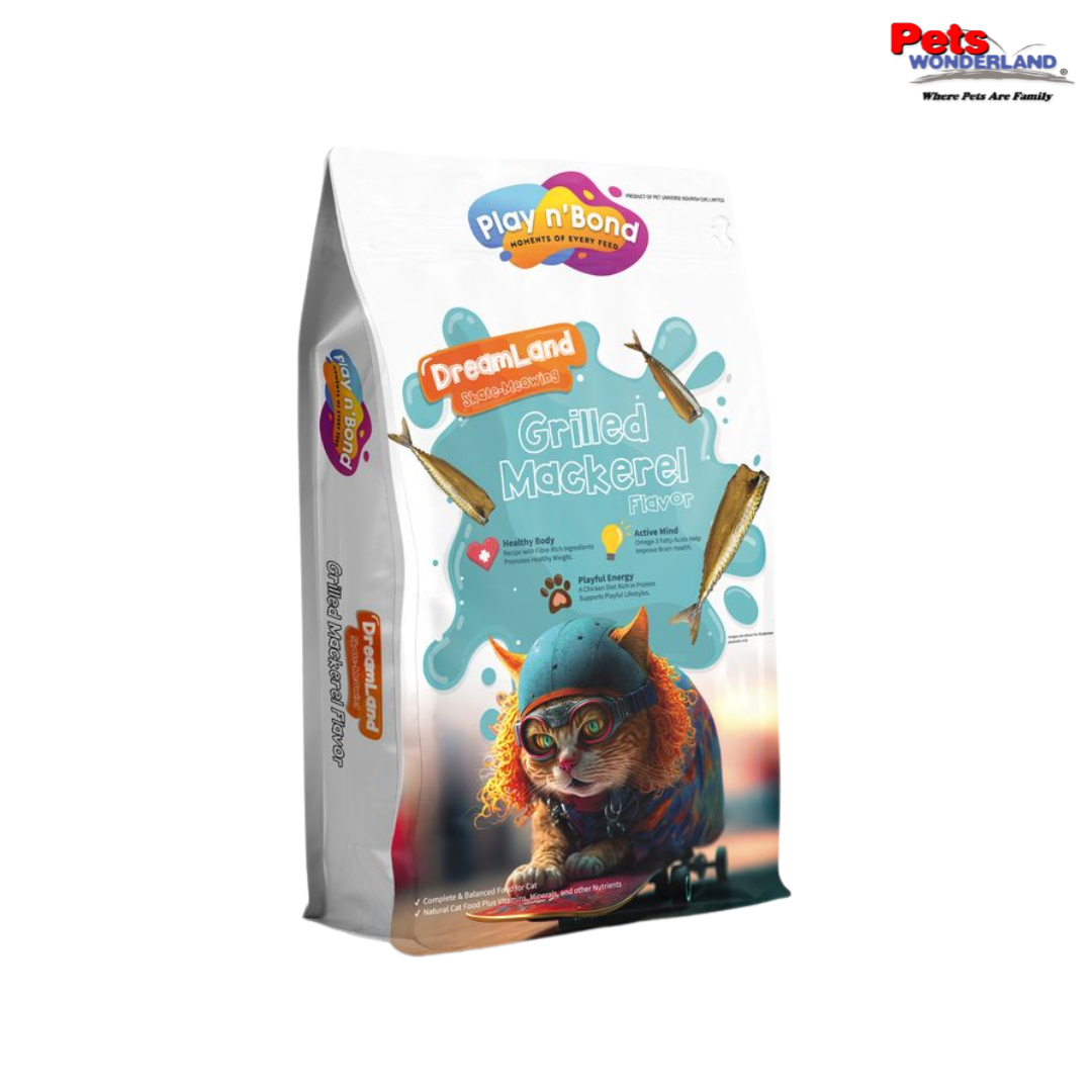 Play n’ Bond Collection Dreamland – Skate-Meowing is designed with grilled mackerel Grilled mackerel is a good source of omega-3 fatty acids, which are beneficial for skin and coat health, joint health, and cognitive function.